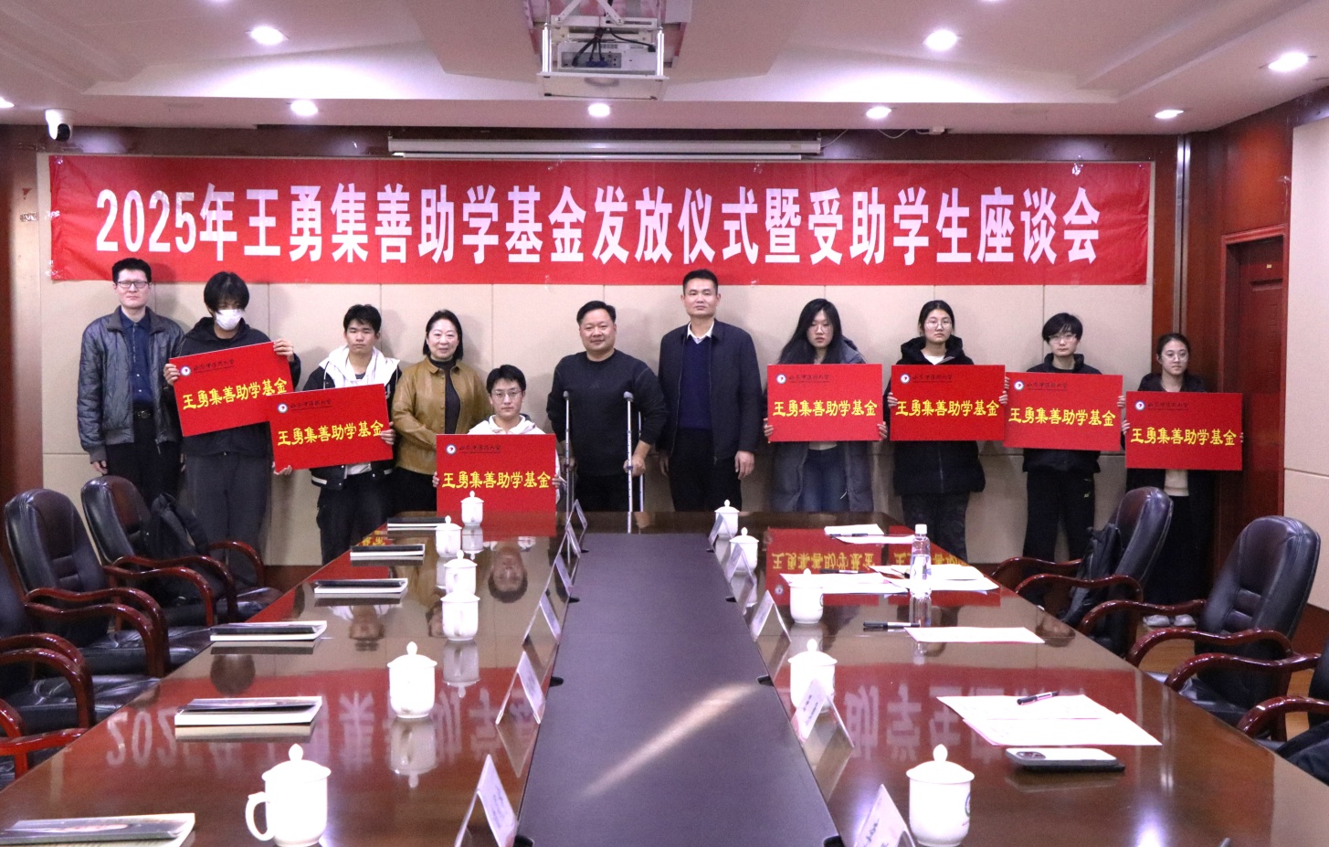 2024年,王勇书记发起并设立“王勇积善助学”专项基金,计划2024-2029年连续5年资助母校——山东中医药大学残疾新生,本次为2025年度项目。本年度精准资助的山东中医药大学8名2025级残疾新生,每人获助2000元。受助学生覆盖中医学院、药学院、针灸推拿学院、医学信息工程学院、康复医学院等院系。