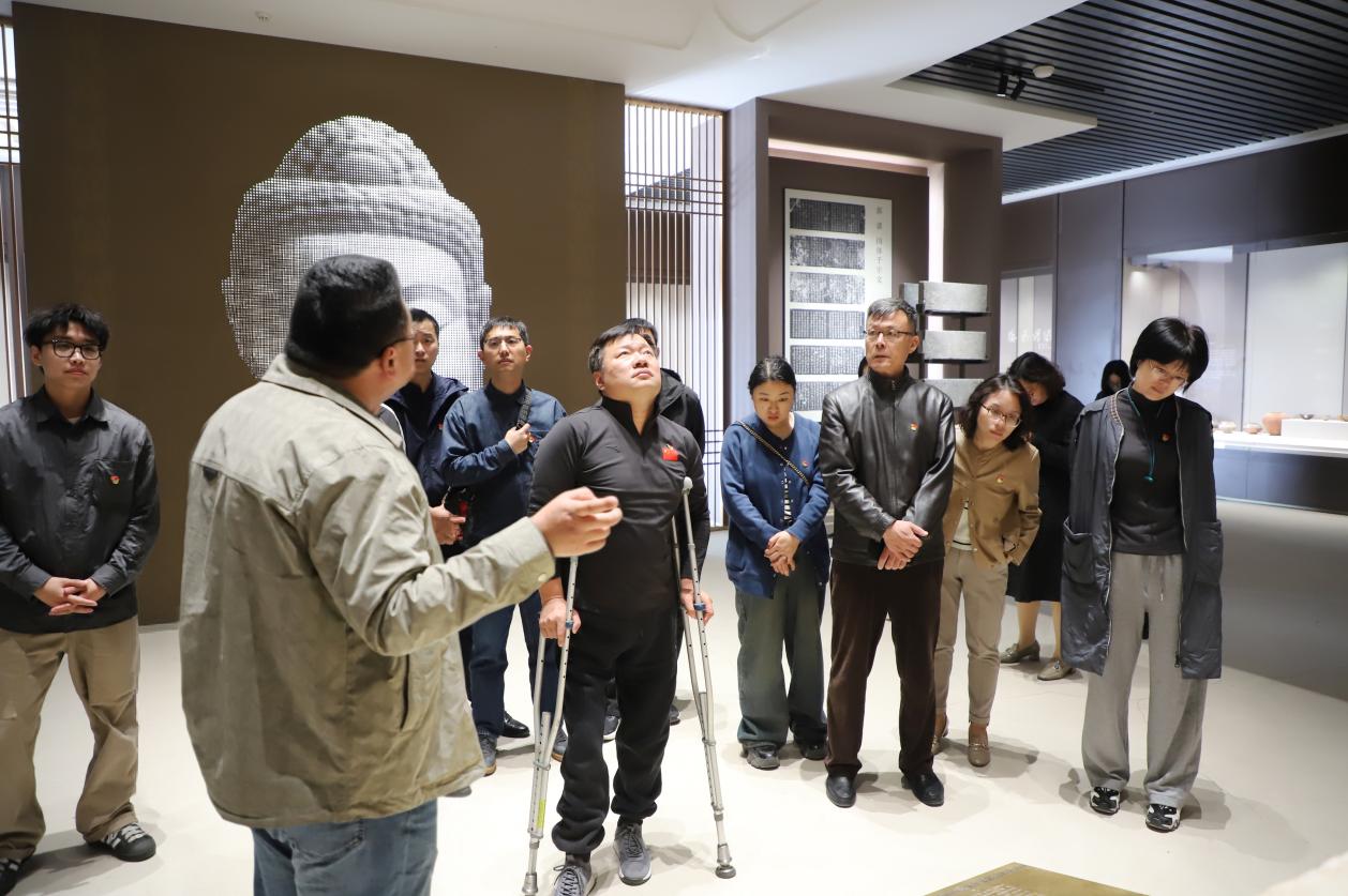 在临邑革命纪念馆,活动现场庄严肃穆,王勇书记带领全体党员干部敬献花篮、整理缎带,向革命先烈致以崇高敬意。随后,全体党员面向鲜红的党旗,举起右拳重温入党誓词,铿锵有力的誓言彰显着党员们不忘初心、牢记使命的坚定信念,深刻感悟革命先辈浴血奋战、无私奉献的革命精神。在前杨村村史馆,直观感受乡村振兴战略实施以来,基层治理、产业发展和乡土文脉传承的生动实践;在临邑博物馆,沉浸式领略中华文明的深厚底蕴与临邑地域文化的独特魅力;在王为民事迹展览馆,认真学习王为民同志“敬业、创造、爱民、奉献”的精神,以先进典型为标杆汲取奋进力量;在洛北春博物馆,近距离感悟传统技艺中蕴含的劳动人民的智慧与坚守。