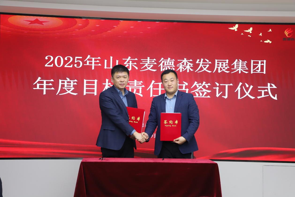 3月25日,山东麦德森发展集团2025年度经营管理目标责任书签订仪式在厚德楼会议室圆满举行。