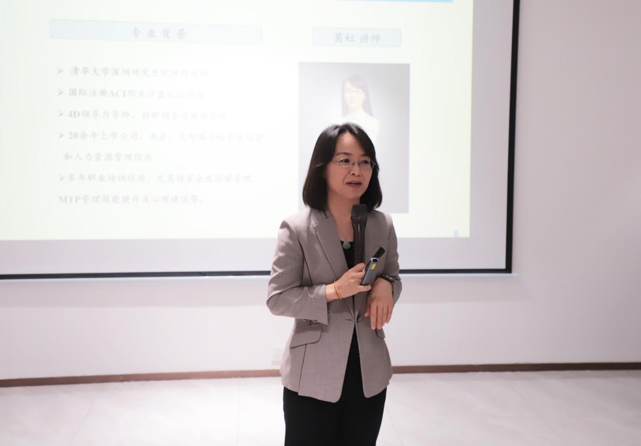 此次培训特邀清华大学深圳研究生院特聘讲师、国际注册ACI职业沙盘认证讲师、4D领导力导师葛虹授课。集团党委书记、董事长王勇携集团中高层管理人员及全体党员90余人参加培训。