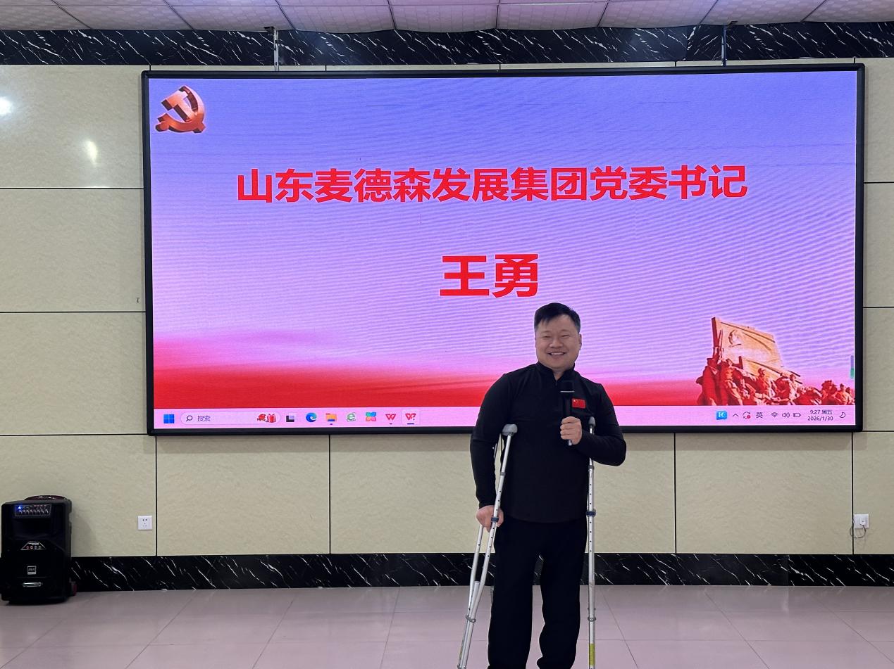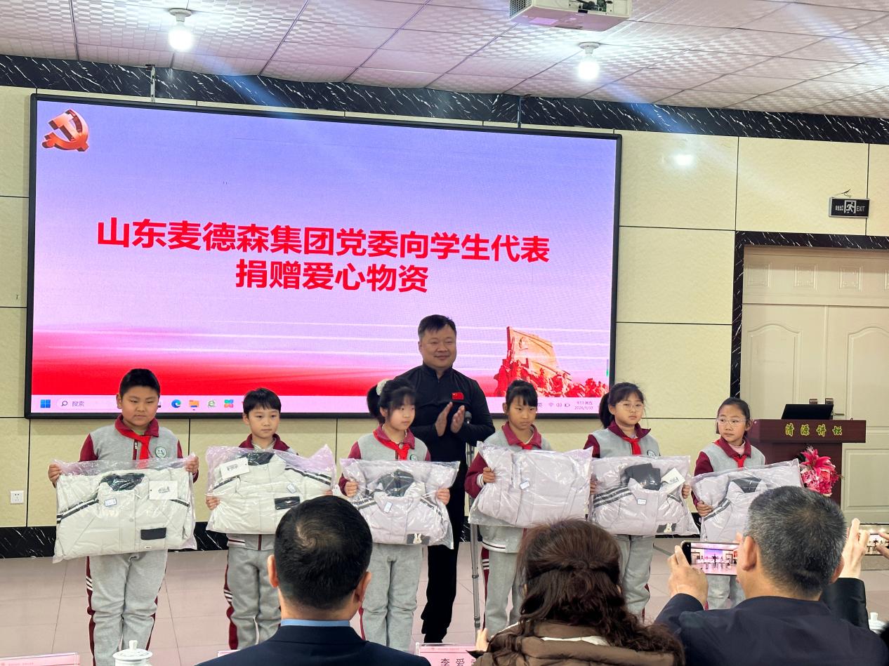 山东麦德森发展集团党委书记、董事长王勇作为特邀嘉宾参加活动,代表集团党委向学生们捐赠爱心物资,并现场发表讲话。