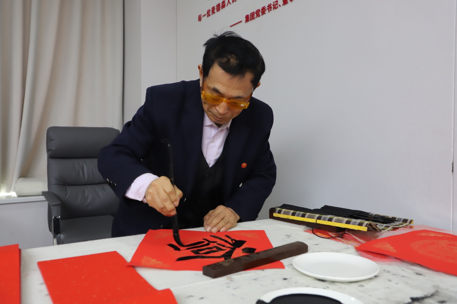 正值二十四节气之首“立春”,活动现场洋溢着万物复苏的春意与年味。在新春茶话会环节,市残文联书法家协会主席姚乐光、理事薛建忠及市中区肢协代表王恩立现场挥毫泼墨,创作春联与“福”字,立春剪“春”字的传统民俗展示,将浓浓的节日祝福融入笔端。