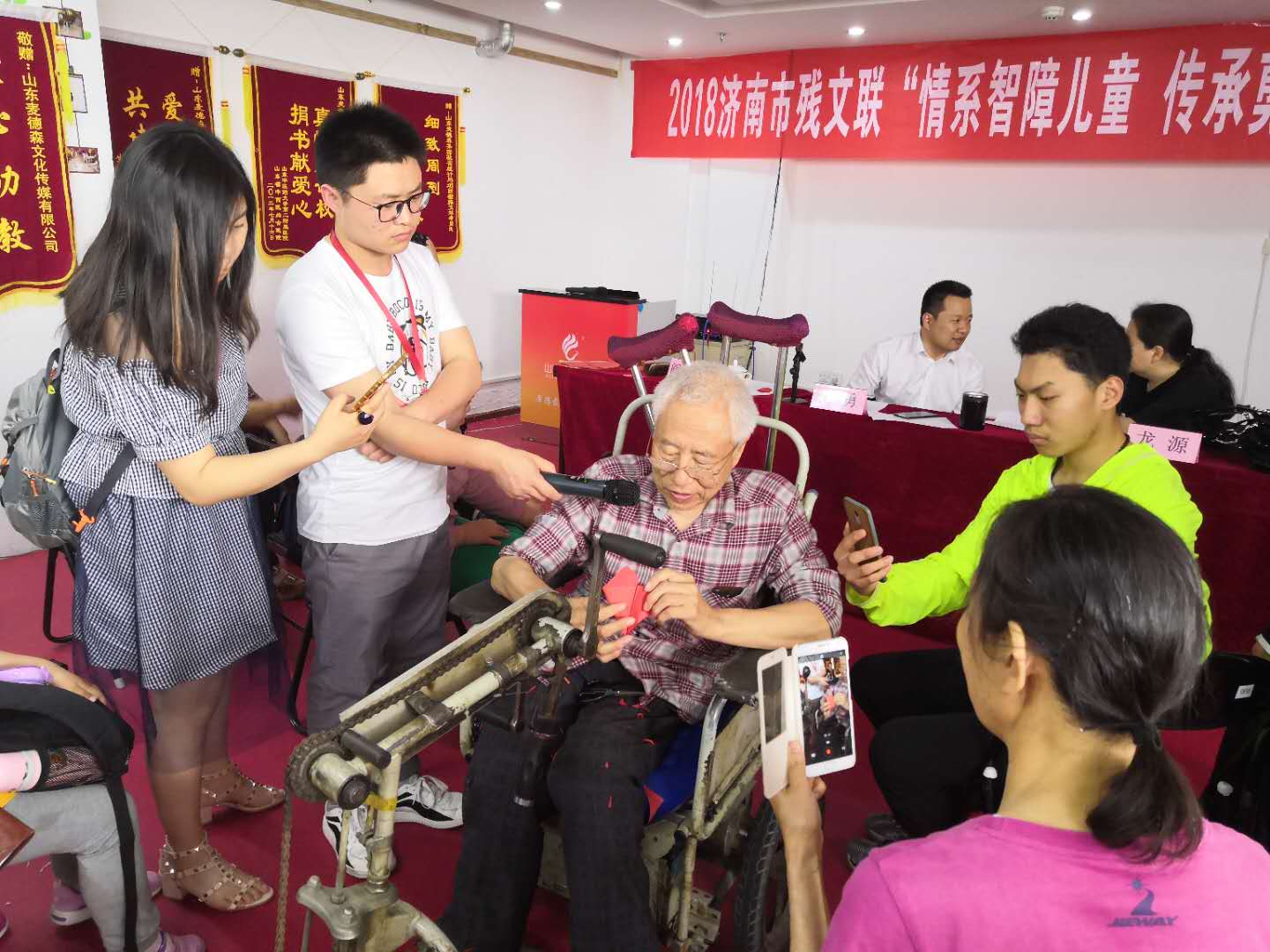 为进一步推进文艺助残工作,丰富残疾人精神文化生活,让智障儿童在和谐的社会氛围中感受到社会关爱和文化魅力。5月26日,由济南市残疾人文学艺术界联合会主办的“情系智障儿童 传承剪纸艺术”特别活动,在山东麦德森集团多功能活动室拉开帷幕,市残联主席团副主席、市残文联主席王勇,市残文联民间艺术协会主席阎铁鲁等艺术家出席此次活动。