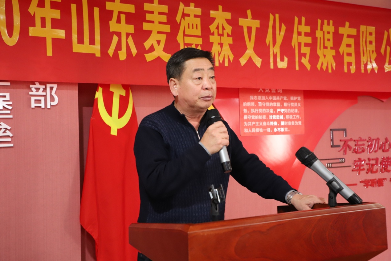 集团党支部副书记桑守正宣读《关于表彰2020年度山东麦德森文化传媒有限公司最佳优秀作品、第四季度和年度销售冠军的通报》